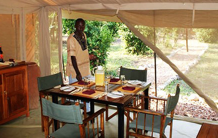 Vi gillar Bush Lodge för att det på alla sätt är ”en riktig safari camp”. Läget är perfekt med utsikt över Kazingakanalen som är epicentrum för djurlivet i QENP. Lodgens tält är byggda på upphöjda träplattformar med egen veranda med utsikt mot kanalen. Inredningen i tälten är ganska enkel men det är trivsamt, rent och fräscht. Varje tält har förutom en egen toalett en liten utomhusdusch bakom tälten. På en stenläggning omsluten av ett bambustaket duschar ni under bar himmel. En detalj som gör så mycket för känslan.