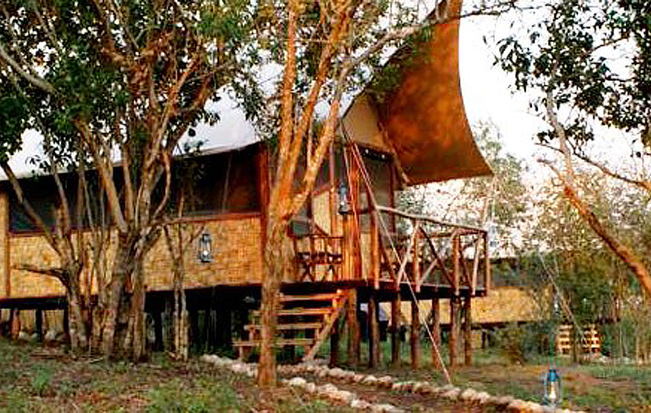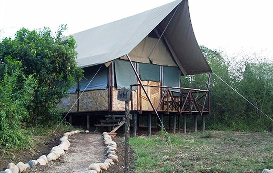 Bush Lodge är en liten tältcamp som erbjuder den riktiga safarikänslan. Alla rum ligger i fasta tält. Tälten har riktiga sängar, toalett och en utomhusdusch. Tälten är byggda på träplattformar. Här finns också fem lite enklare tält med sängar men med gemensam toalett och dusch. Lodgens bar, restaurang och reception ligger i ett öppet tält. Lodgen har ett riktigt bra läge alldeles intill Queen Elisabeth National Parks livsnerv; Kazinga kanalen. Låt vakter eskortera er till ert tält på kvällen dock eftersom flodhästarna ibland kommer upp från floden och rör sig på området.