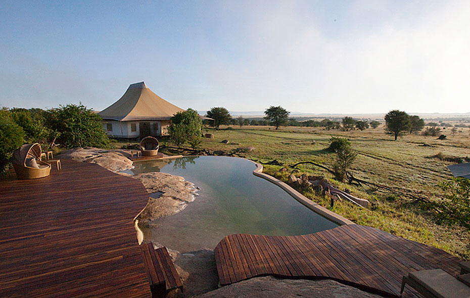 Tälten ligger ganska utspridda och det finns inga stängsel utan djuren kan röra sig mellan tälten. Låt en av campens vakter eskortera er till ert tält efter middagarna på kvällen. Alla tält på Sayari camp är stora och har en inredning som bäst beskrivs som rustik lyx. Stora sängar med riktiga sängkläder, bord, sto, garderob och badrum med toalett och badkar. Alla tält har dessutom en liten veranda med utsikt över savannen. Tälten är byggda på träplattformar som är upplyfta en liten bit ovanför marken Lodgen har också en pool. Poolen är byggd ute på kanten på kullen med fantastisk utsikt. Det är en ren njutning att svalka sig i poolen efter en lång varm dags safari.