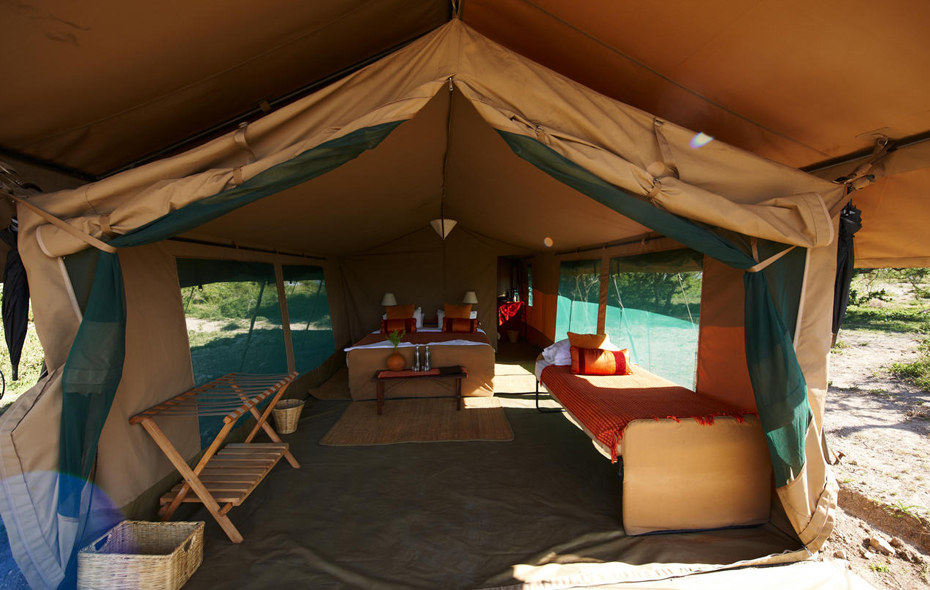 Ubuntu Camp är på i princip alla sätt väldigt likt Olakira Camp och de två lodgerna drivs också av samma ägare, Asilia Africa. Ubuntu Camp har åtta tält som står på rad med de två mässtälten i mitten. Inget skymmer utsikten från er veranda och tälten står ganska utspritt så varje tält har en privat känsla. Tälten är inredda med riktiga sängar med lakan, täcken och kuddar, skrivbord, stolar och riktig toalett och dusch.